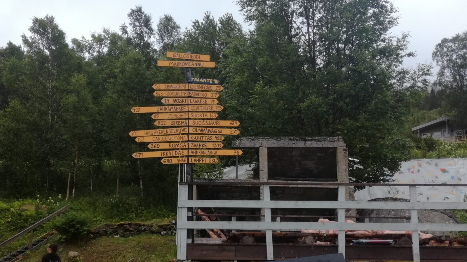 The Gállogieddi waymark, build by Márkomeannu’s staff in 2012, overturns colonial organization of space, subverting the Norwegian – as well as Swedish, Finnish and Russian – understanding of what is worth being put on a waymark, what is worth being a destination and a reference point. It subverts Norwegian toponymic silencing by attributing authority to indigenous Sámi place-names which are not only displayed in public but used as reference points.